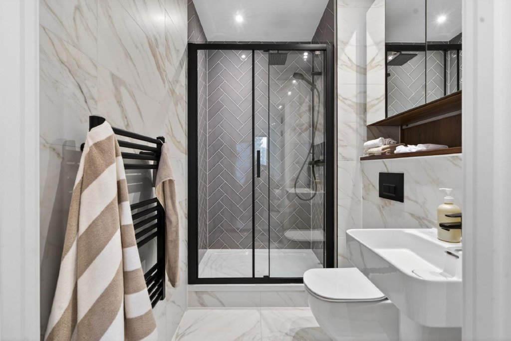 - Stylish bathroom and en suite spaces finished with Hansgrohe fittings and full height tiling