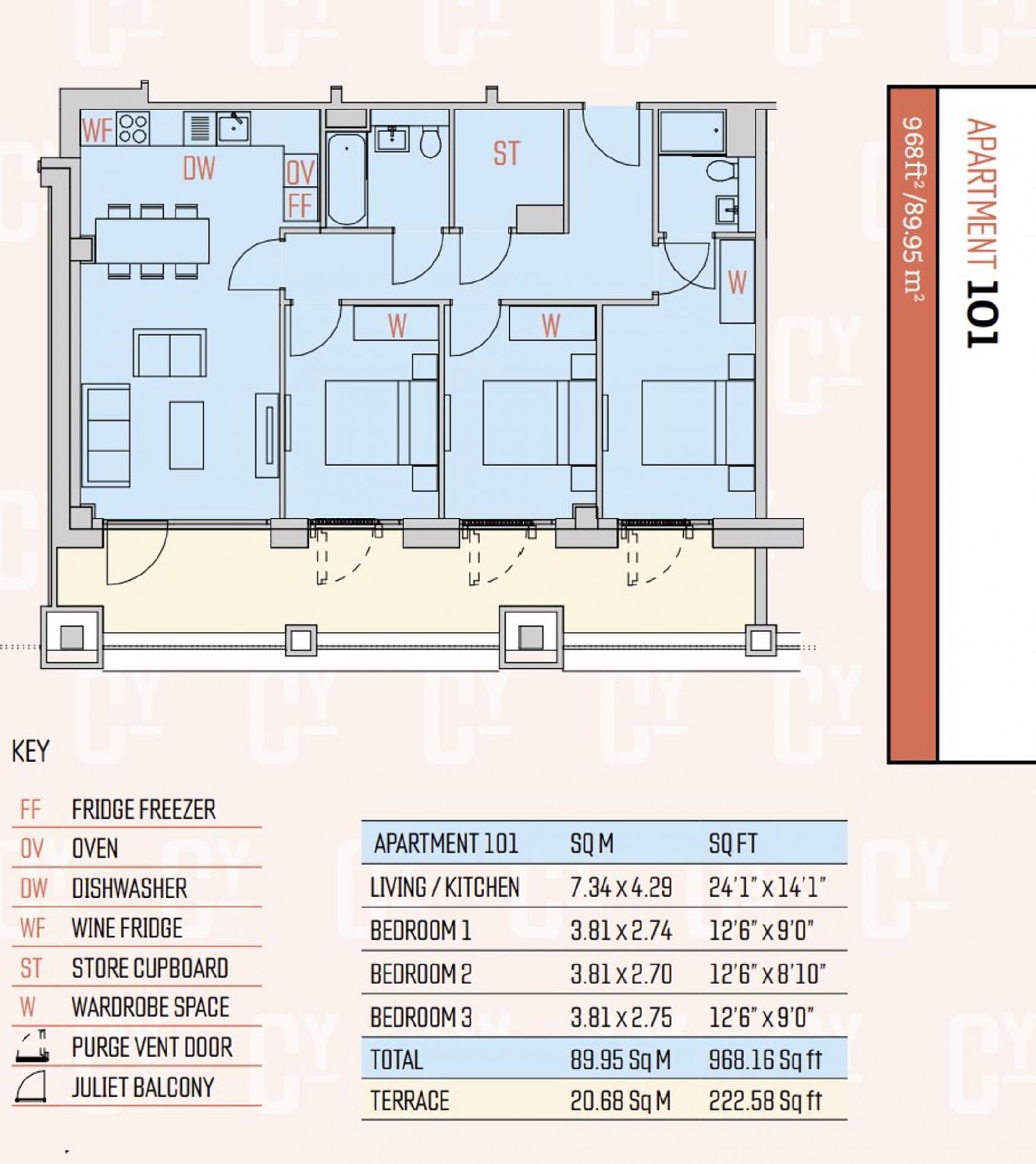 - Private terrace extending to approximately 222 sq ft, ideal for outdoor entertaining
