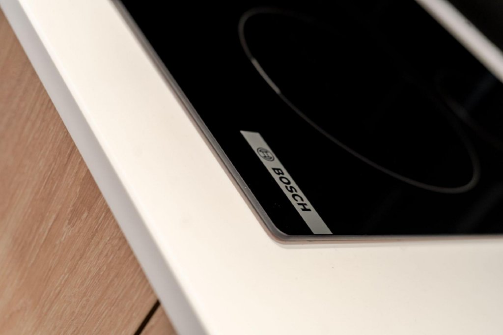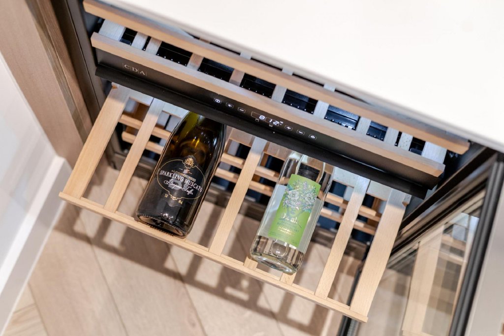 - Contemporary kitchen with integrated Bosch appliances and wine cooler