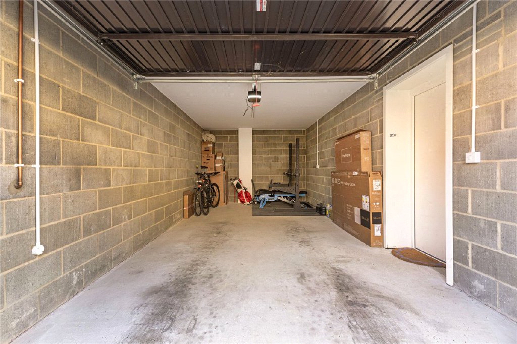 On the ground floor, the light entrance hall provides practical storage for coats and access to the garage. The garage is generous in size, with room for a car as well as storage or even a home gym, as the current owners have done.