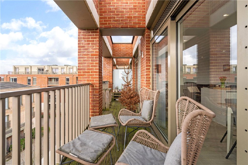 Double sliding doors flood the space with natural light and open onto a south facing private balcony with views towards the York Racecourse offering an inviting outdoor spot to relax.