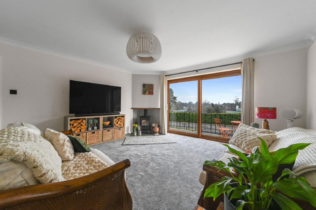 The main reception room combines sitting and dining areas in a space that feels both welcoming and comfortably proportioned. A multi-fuel burner takes centre stage in the room, creating a cosy focal point and offering warmth and atmosphere when the evenings are cooler. A terrace at the front of the room takes full advantage of the elevated position, offering a peaceful spot to relax and take in the extensive views across Lower Ufford and the water meadows. The current owner describes it as the perfect place to enjoy a glass of wine on a warm, summer evening.