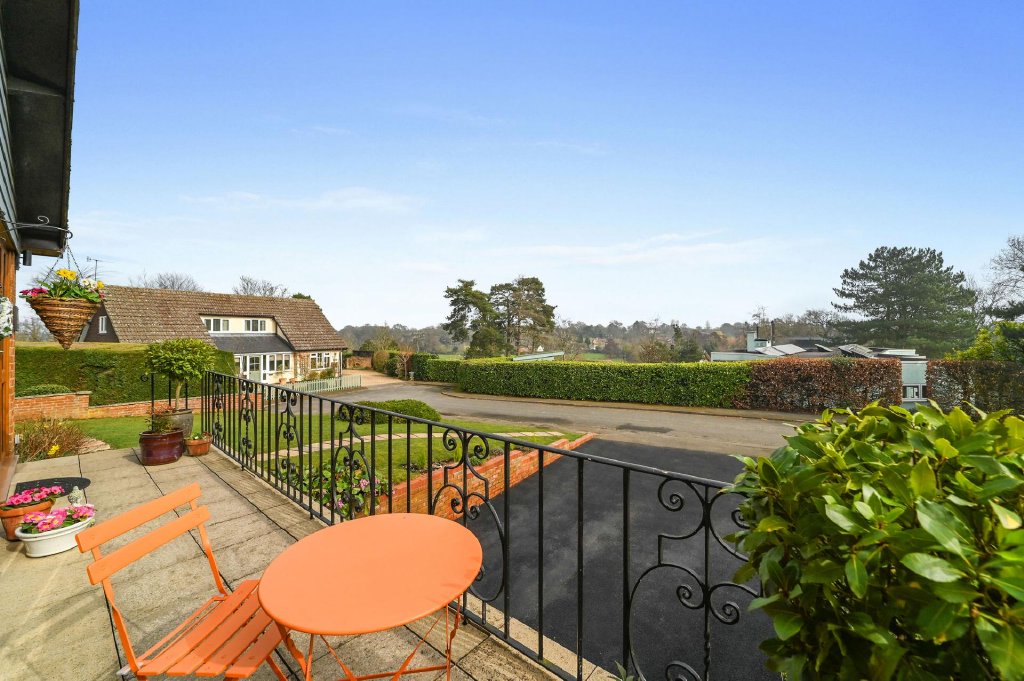 Being elevated above the surrounding area allows the property to enjoy far-reaching views from the front terrace. The rear garden faces west, ensuring it enjoys plenty of afternoon and evening sunshine. Mature planting adds colour and structure throughout the seasons, while a row of established espalier fruit trees (apple and pear) provides interest and productivity. The garden is also home to raspberry bushes, a peach tree and a variety of shrubs and flowering plants.