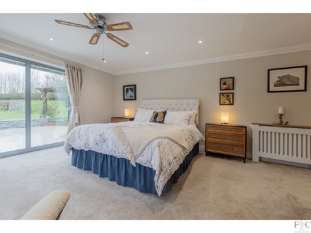 Planning permission has been granted under reference 24/01159/FUL for the creation of a fifth bedroom above the existing lounge, designed by Ellis Architectural Design. The approved plans (Drawing No: SE/1545/2b) show a first floor bedroom with grey finish double glazed doors and a Juliet balcony to the front elevation, enjoying what will be an outstanding elevated view over the front gardens, sweeping lawns and private lake — a truly special addition to an already remarkable home. Prospective purchasers should refer to the approved planning drawings for full specification details.