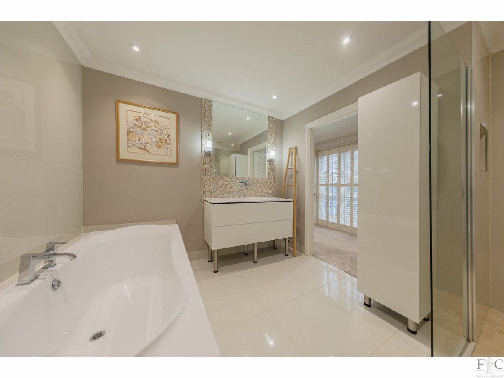 Steps lead from the sitting area into an inner hallway giving access to the bedroom accommodation. Two well-proportioned bedrooms both benefit from French doors opening to the front elevation and share a family bathroom. The master bedroom suite is situated at the far end of the property and benefits from French doors to the front elevation, a dressing area with fitted wardrobes, and a luxurious ensuite comprising a wash hand basin, WC, rainfall shower and freestanding bath. French doors from the dressing area also open out to the private rear courtyard garden.