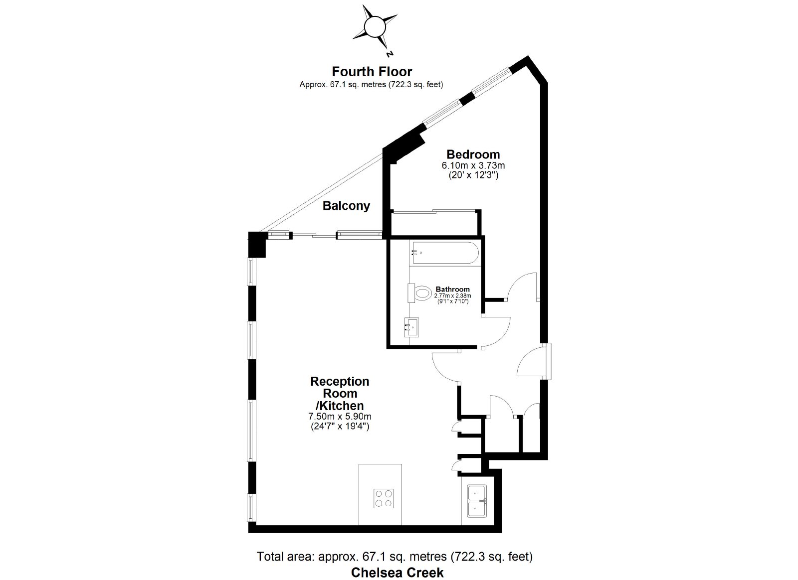 - Total sq ft: 722