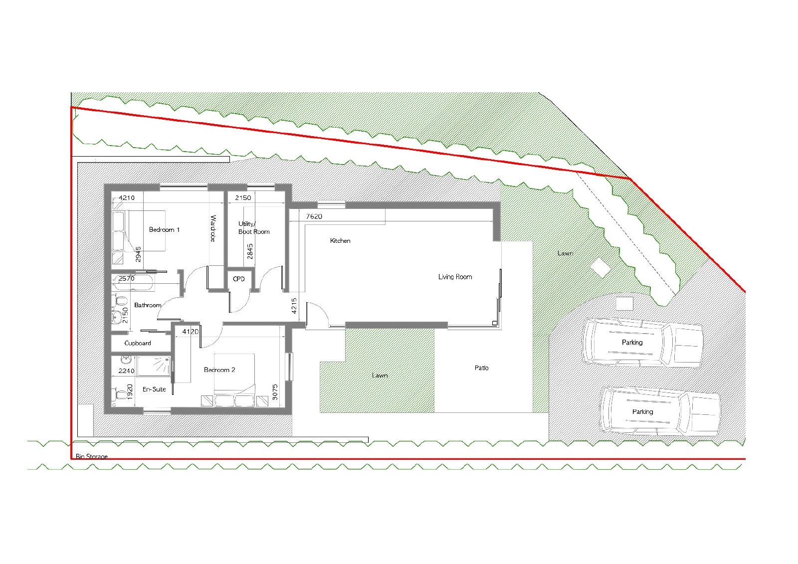 Outside, the home is set within wrap-around gardens with a south and south-east facing patio and level lawn. A sloping approach from the driveway ensures easy wheelchair access. Parking is provided for two cars along with an EV charging point, exterior power, and a water tap.