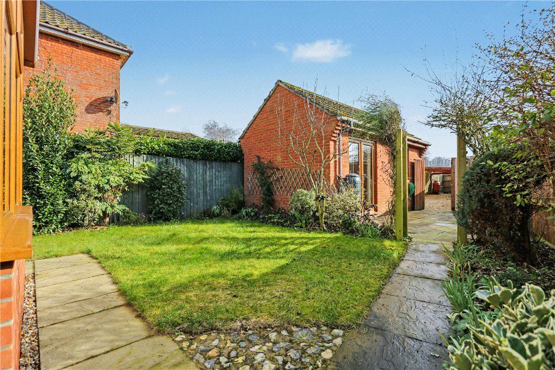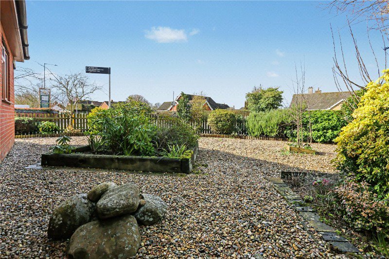 Occupying a naturally sunny position, the property enjoys neatly kept front and rear gardens that wrap around the home, creating a wonderful sense of space and privacy. The lawned areas are complemented by mature planting and seating spots, perfect for enjoying the warmer months from morning through to evening thanks to the home’s bright aspect.