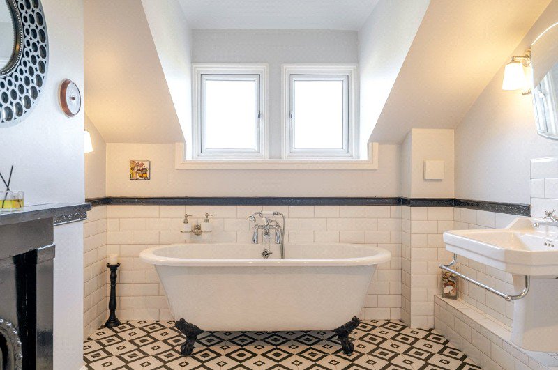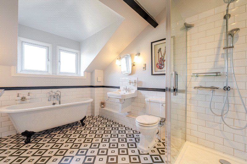 The second bedroom is equally well-sized and served by a beautifully appointed family bathroom, finished in a classic style in keeping with the character of the property.