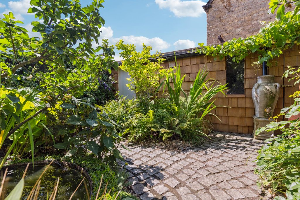 Considerable thought has gone into the design of this garden with exterior lighting and a meandering footpath leading to the rear boundary where there is an outbuilding with power and light connected and a velux window. This outbuilding is currently used as a gymnasium and can also be used as a home office. Because of its configuration, the garden provides both shade and sun and has been a source of great enjoyment to the present owner.