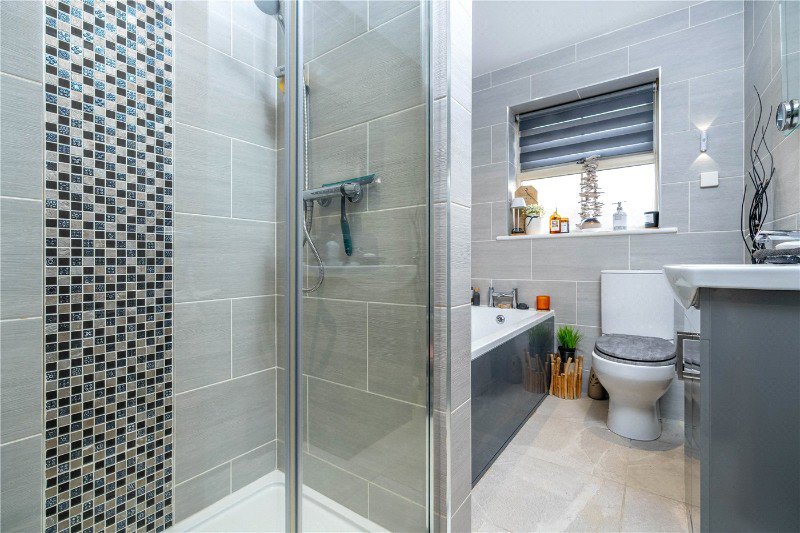 There are two well-proportioned double bedrooms. The master bedroom benefits from a stylish en-suite shower room, finished with contemporary tiling. The second bedroom, currently used as a dining room, is served by a beautifully appointed main bathroom featuring both a bath and separate shower, again finished to a high specification.