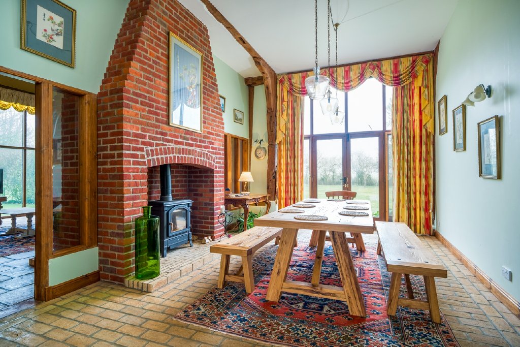 Country Character. Welcome Home! This wonderful 6-bedroomGrade II Listed barn conversion offers character and versatility, with soaring vaulted spaces, meticulous joinery, exposed brickwork, and warm wood burners, combining authentic barn character with comfortable family living. The versatile layout offers potential for multi-generational living, guest accommodation, home working, or creative use, while generous outbuildings present exciting possibilities for further development (STPP).