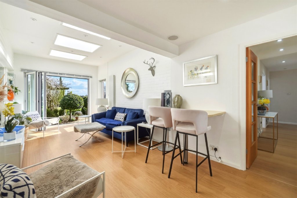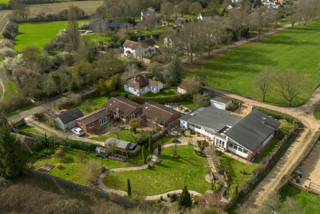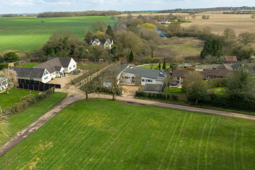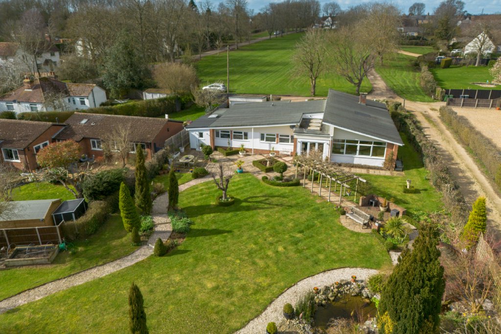 Occupying a prominent position overlooking Wood End Green in Henham, this exceptionally light, spacious and versatile single storey residence offers over 2,000 sq ft of beautifully arranged accommodation, set within generous gardens approaching a quarter of an acre.