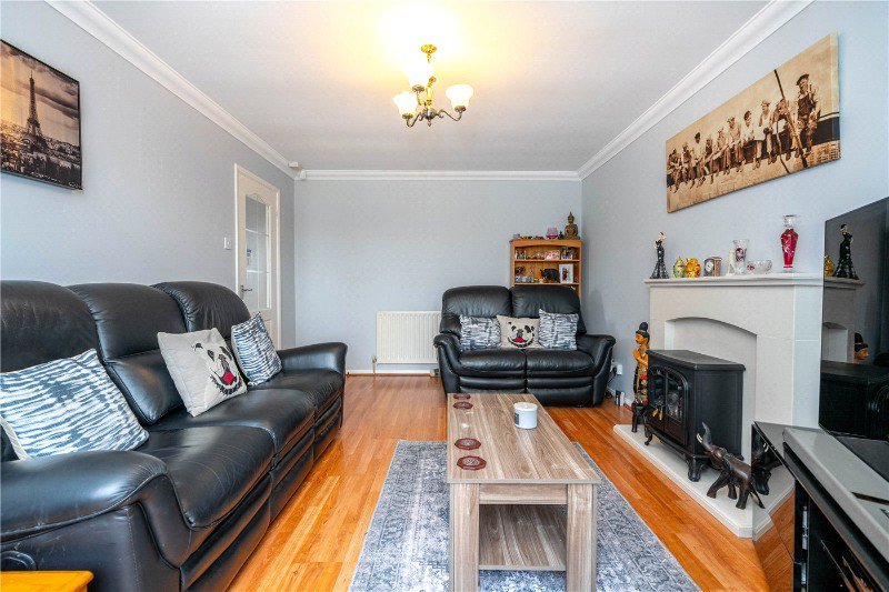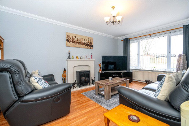 Internally, the accommodation is well laid out and flows from a central entrance hall. The lounge is a bright and comfortable reception room, enjoying a large front-facing window that allows natural light to flood the space. A feature fireplace with inset electric fire creates a focal point to the room.