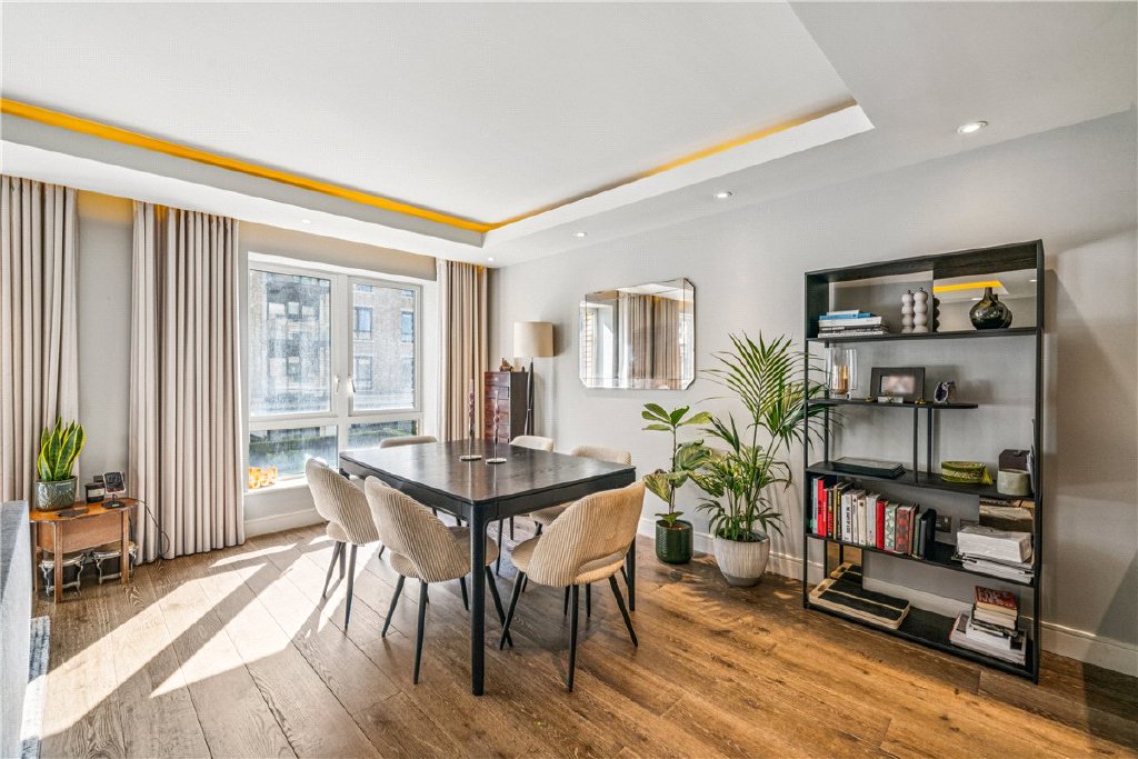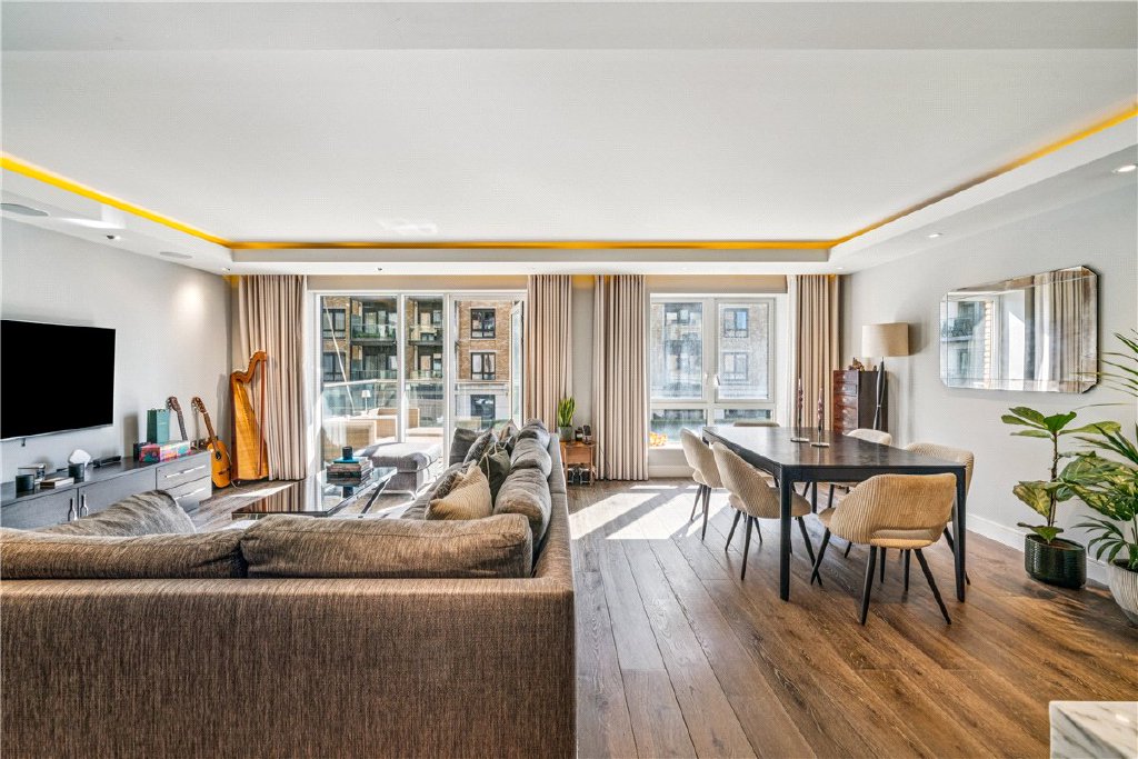 This apartment has beautifully arranged accommodation with a substantial open plan kitchen/dining/reception room allowing for sensational living/entertaining space which opens on to a balcony with river views. There are two double bedrooms, - with the principal bedroom enjoying the luxury of an en-suite bathroom and access to a river facing balcony - plus a second guest bathroom. The property has lift access and a secure underground parking space.