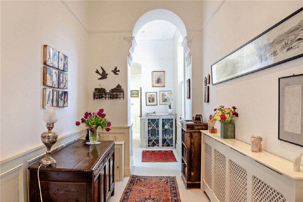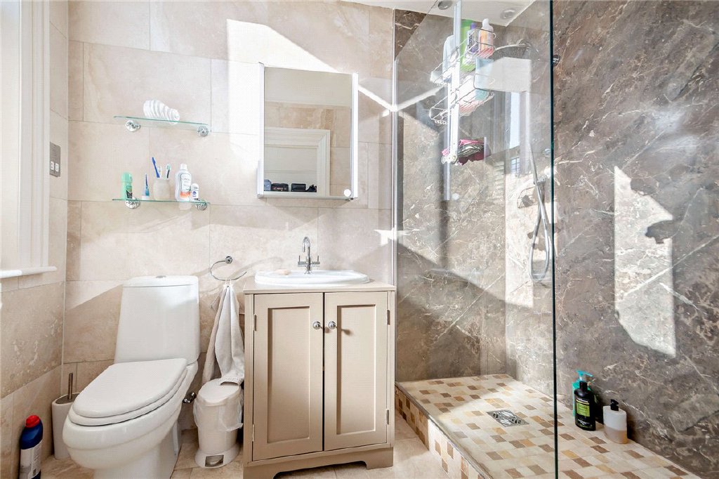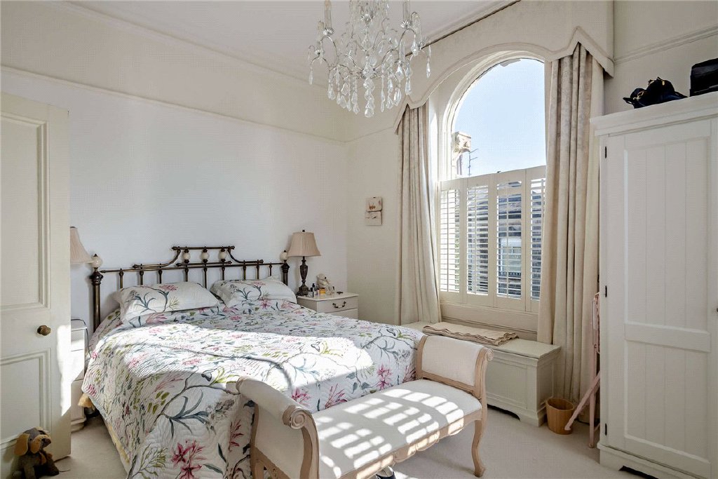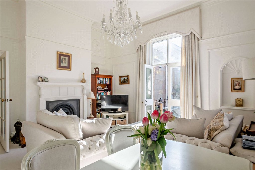 This generously proportioned apartment is located on the first floor of this imposing and impeccably maintained building, and the accommodation has been significantly improved creating a stylish, spacious and welcoming two bedroom home. A striking reception hall leads through to the magnificent sitting room, where high ceilings and period details create a wonderful sense of space. French doors open directly onto the roof terrace, which enjoys a pleasant south facing aspect. The bespoke fitted Breakfast kitchen includes a smart range of integrated appliances, a range oven and provides room for a dining table and chairs. There are two spacious double bedrooms, with the principal bedroom featuring a contemporary shower room. The house shower room includes a modern walk in shower and high quality finishes. A further advantage of this outstanding apartment is the provision of two private off street parking spaces, exclusively for the use of Apartment 4.