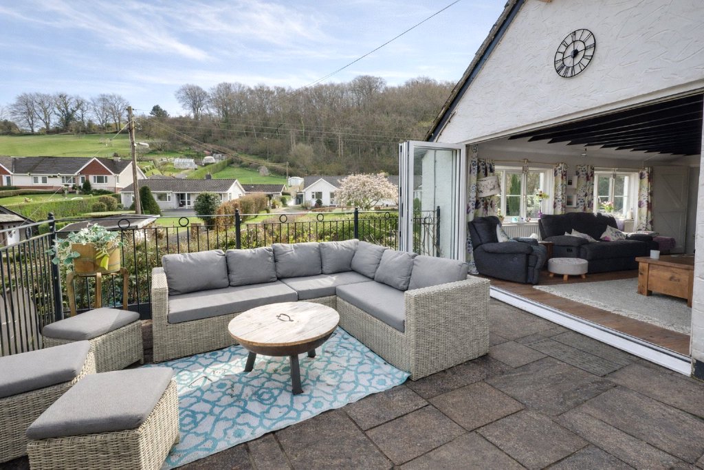 Further outside features include ample parking via a gated driveway, a superb patio area to take in nearby countryside views as well as an outdoor kitchen with bi-fold doors into the living room, greenhouse, and access to the River Sterridge which borders the grounds. The surrounding gardens extend into areas of wild planting and mature woodland, creating a truly tranquil and picturesque setting.