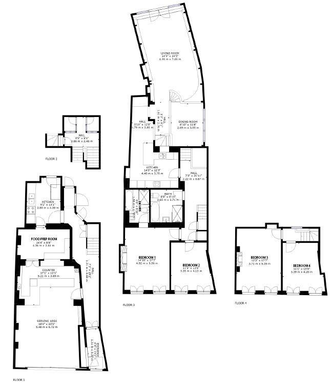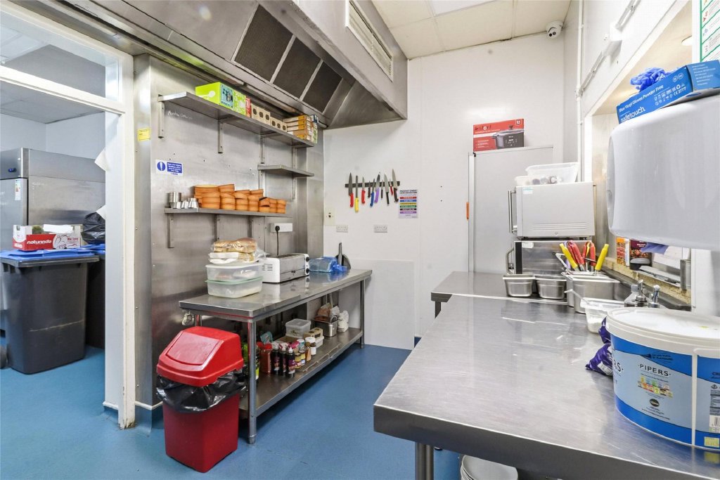 The counter area offers a further 17ft x 12ft. Beyond the counter is a food preparation room with a range of commercial grade appliances and work surfaces further on again is a kitchen/washing area with further stainless-steel commercial equipment including a dishwasher, sinks and fridges. At the very rear there is a walk-in cold room. ** Please note, the commercial appliances are not included in the sale but are available by separate negotiation if required.