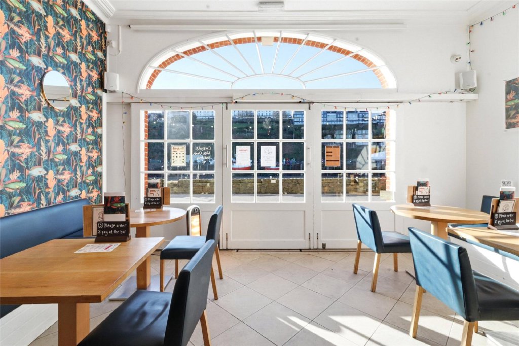 At roadside, we understand there is an area at the front of the building where chairs and tables can be set. This would provide some outdoor seating for those using the cafe, for example. At the rear of the building and leading from the main and impressive living room, there is a sea facing terrace which has space for tables and chairs and which enjoys far reaching views over the Bristol Channel taking in Capstone and Lantern Hill, the Bristol Channel and across to the distant Welsh coastline.