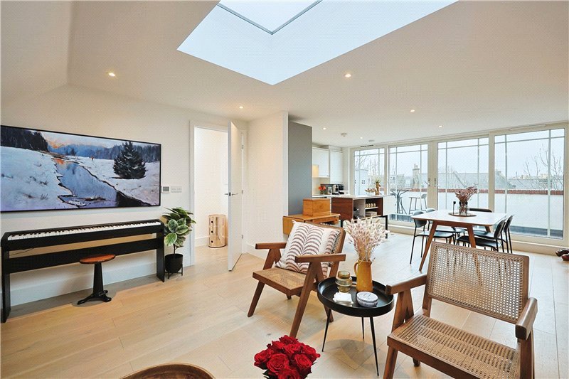 Stunning three-bedroom split-level maisonette, featuring allocated parking and an impressive private terrace with far-reaching views. Ideally located within a contemporary mews development, the property is just moments from excellent transport links and the vibrant amenities of Barnes Village.