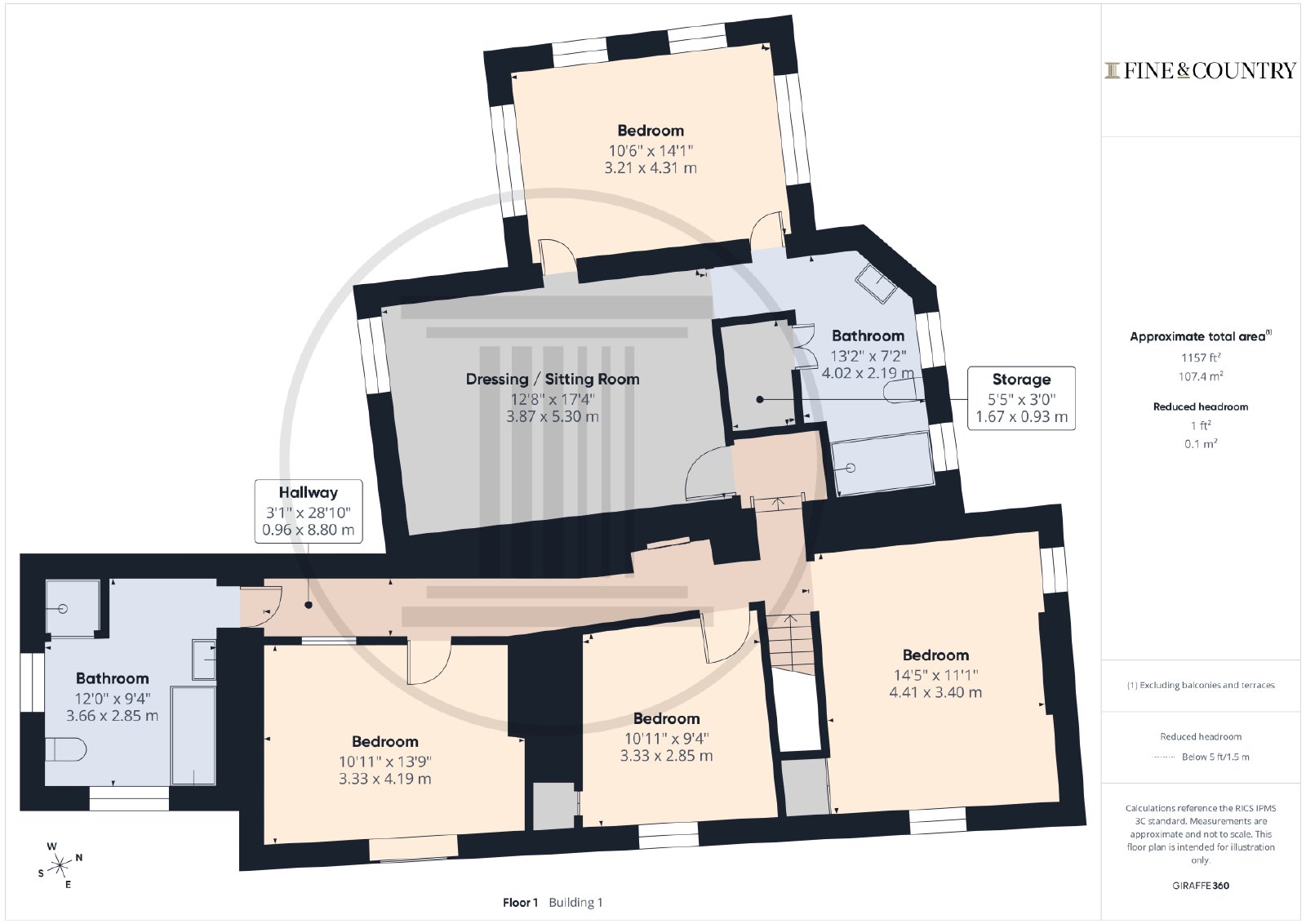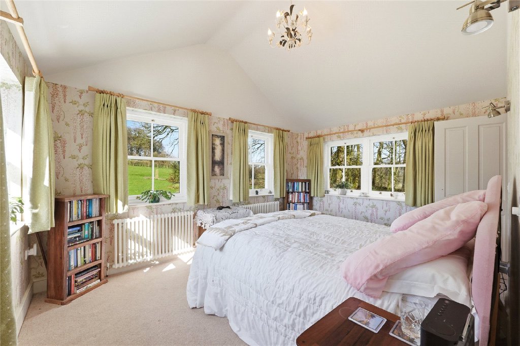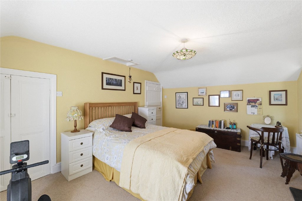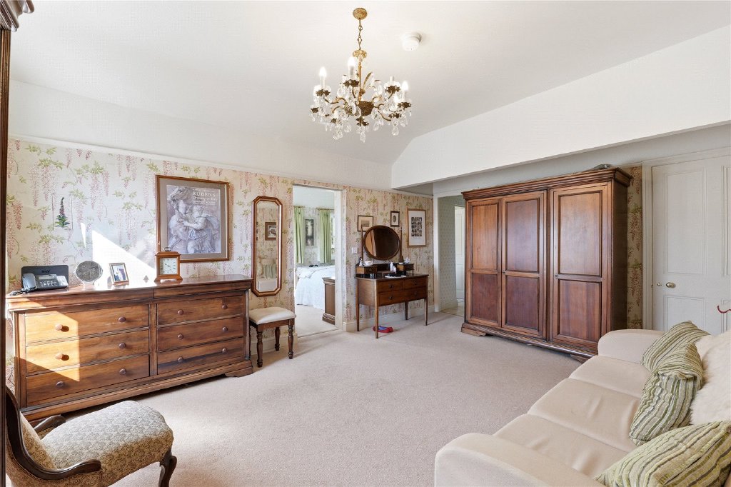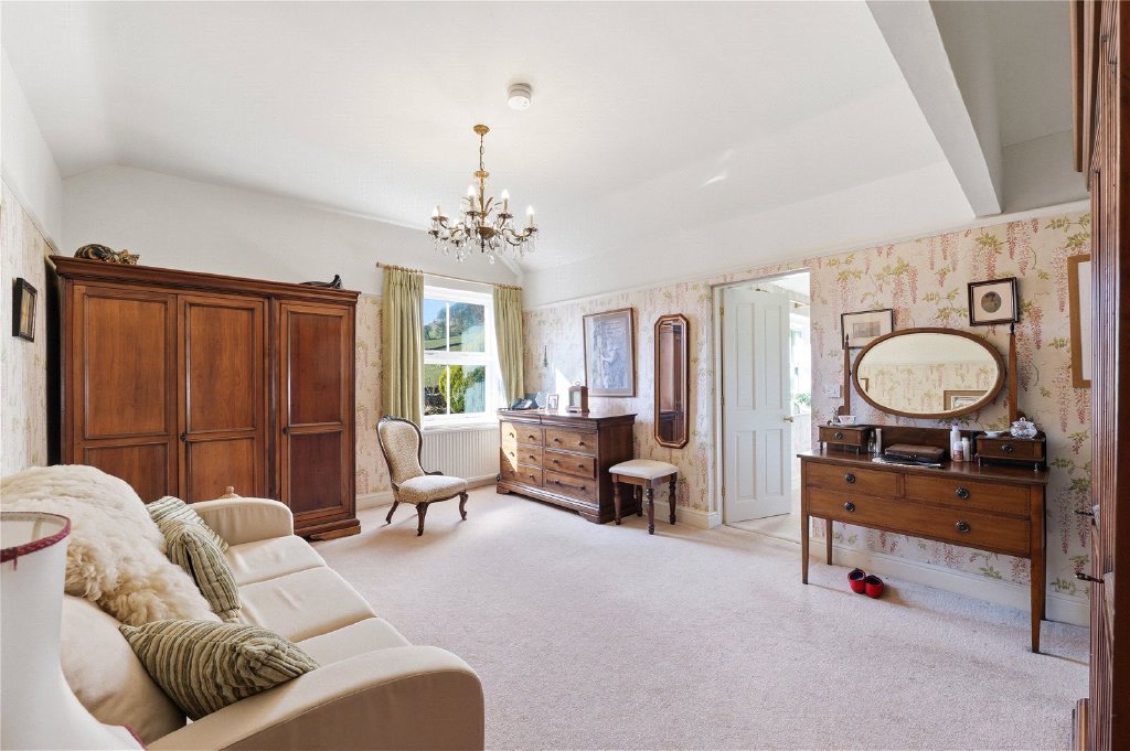 Upstairs, the principal suite offers a peaceful and elevated retreat. A generous dressing and sitting area leads into a beautifully proportioned bedroom with far-reaching views, complemented by a spacious en-suite. The dressing area also offers flexibility and could be reconfigured into a fifth bedroom if needed. Three further bedrooms and a well-appointed family bathroom provide ample space for family and guests.