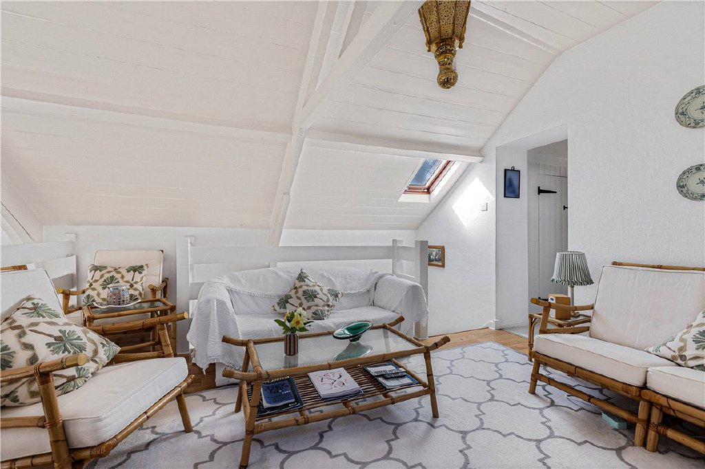 On the first floor, two additional charming bedrooms and a family bathroom are complemented by a charming mezzanine sitting area/study overlooking the main sitting room.