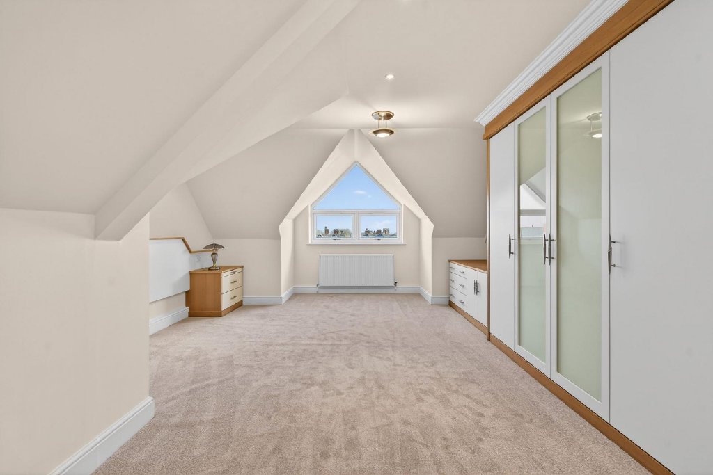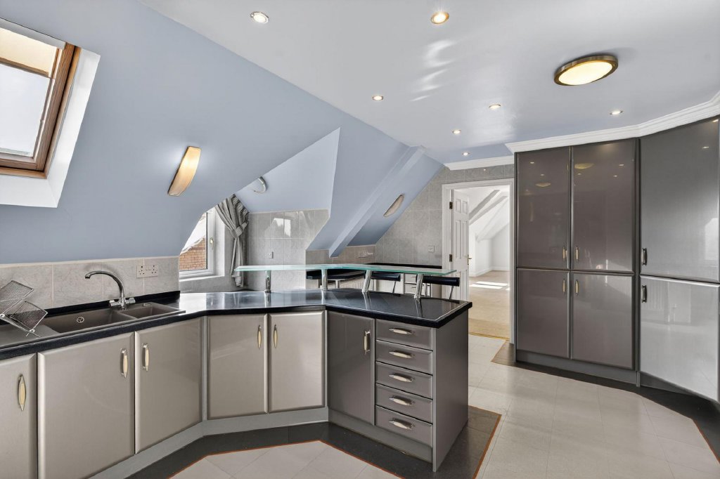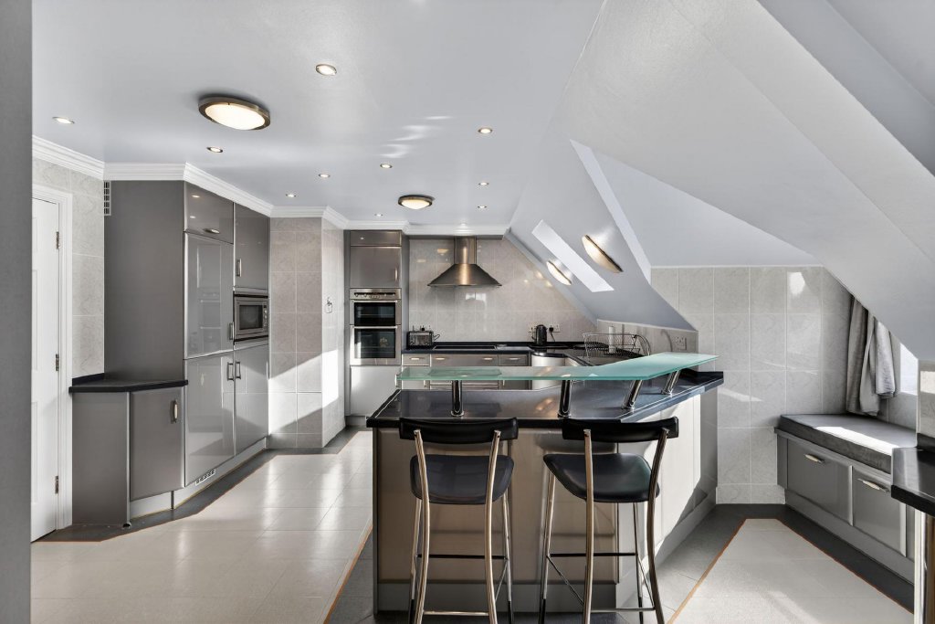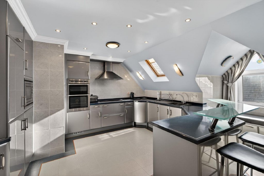At the heart of the home sits a beautifully proportioned breakfast dining kitchen. A space designed as much for slow mornings as it is for hosting. Two separate reception rooms provide flexibility, whether for formal entertaining, quiet retreat, or family living, each enjoying a sense of light and openness that flows throughout the penthouse.
