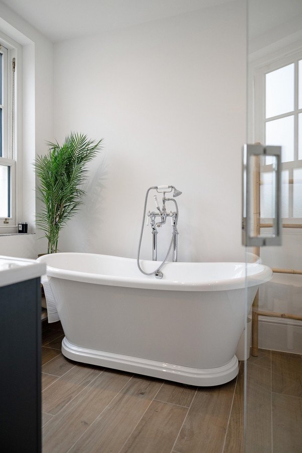 Two double bedrooms each offer their own sanctuary, complemented by luxurious en-suites, finished with a quiet, understated elegance, clean lines, quality materials, and a subtle nod to boutique hotel living.