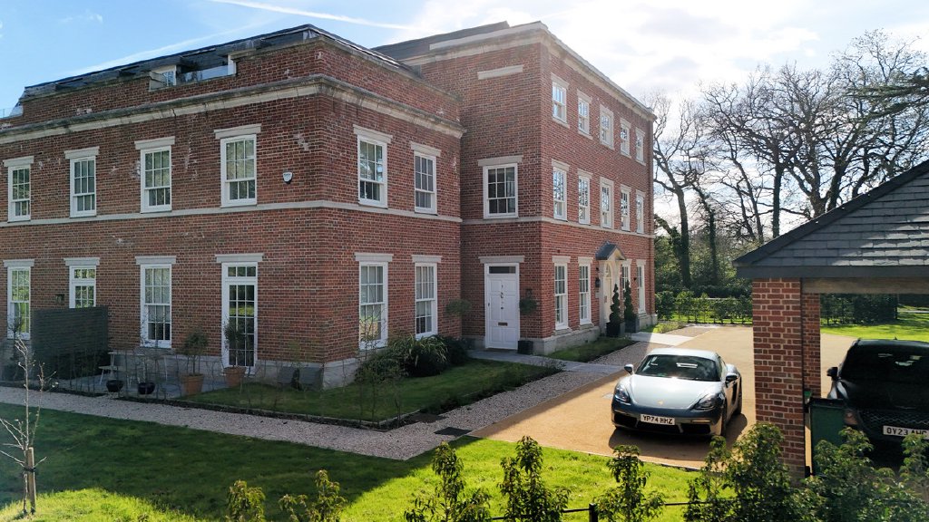 Set behind a private gated entrance and framed by approximately five acres of beautifully composed parkland, this exceptional two-bedroom duplex apartment forms part of an elegant newly built Georgian-inspired manor house, a residence where classical symmetry meets contemporary refinement.