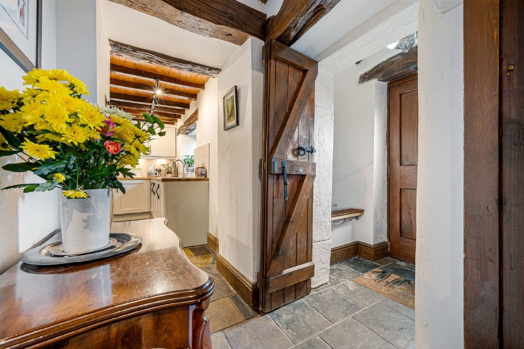 The house is Grade II listed reflecting the age and original architectural details. The following is extracted from Historic England’s schedule: “…probably mid C18th and C19th with C17th remains, and barn probably late C18th. Sandstone rubble with stone slate roof…... Interior has baffle entry in line with the hearth. One of the boxed ceiling beams is in the correct position to have been a firehood bressumer, suggesting a C17th origin for the house.”